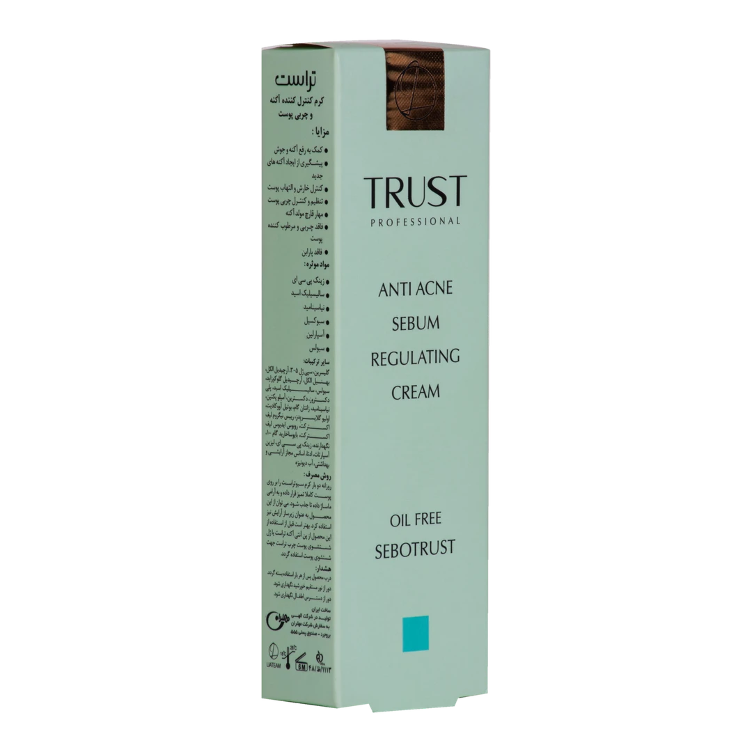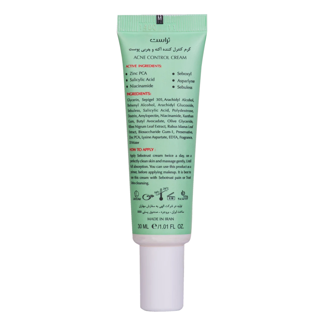 کرم کنترل کننده چربی و ضد جوش تراست با برخورداری از ترکیبات منحصربهفرد خود، تعادل طبیعی فلور پوست را بازگردانده و به آن ظاهری شاداب و بدون چربی میبخشد.